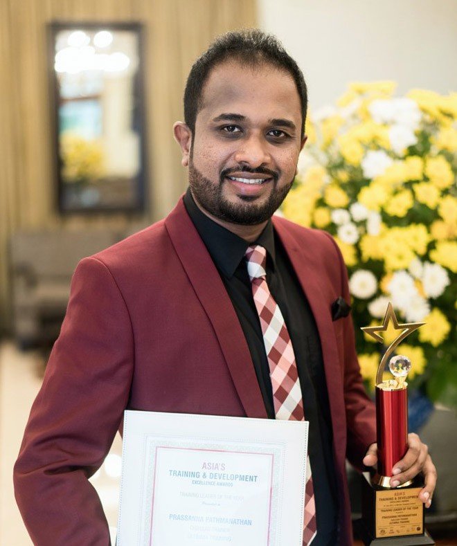 Prassanna Pathmanathan, Sri Lanka’s leading Corporate Trainer and the Founder CEO/Lead Trainer of Ultimma Training, won the ‘Training Leader of Asia for 2018’award at the Asia’s Training and Development Excellence Awards organized by the World HRD Congress and held recently in La Meridian, Singapore.